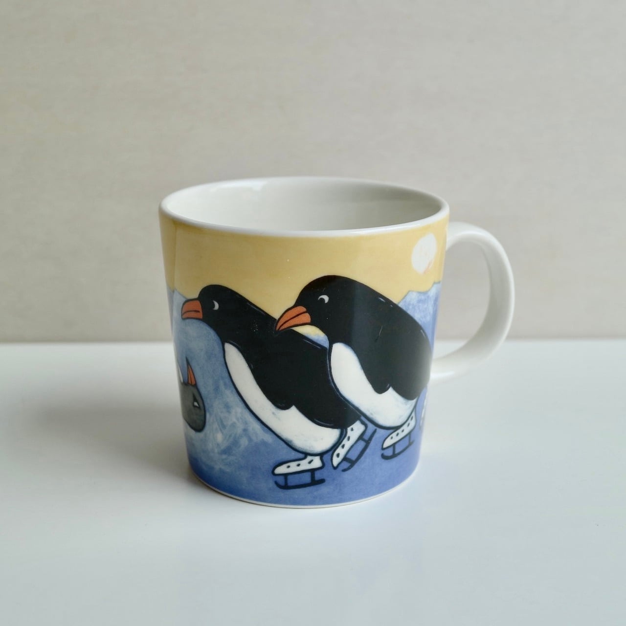 Arabia(アラビア)社のHelja Liukko Sundstrom(ヘルヤ・リウッコ・スンドストロム)デザインのペンギンが描かれたマグカップです。