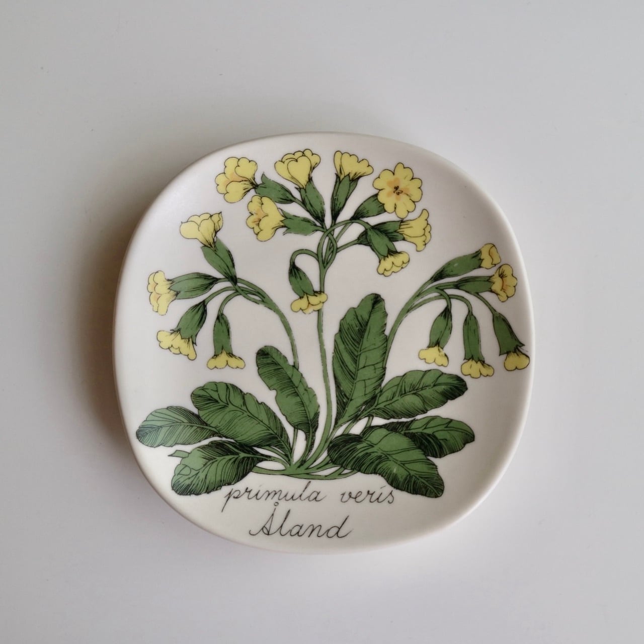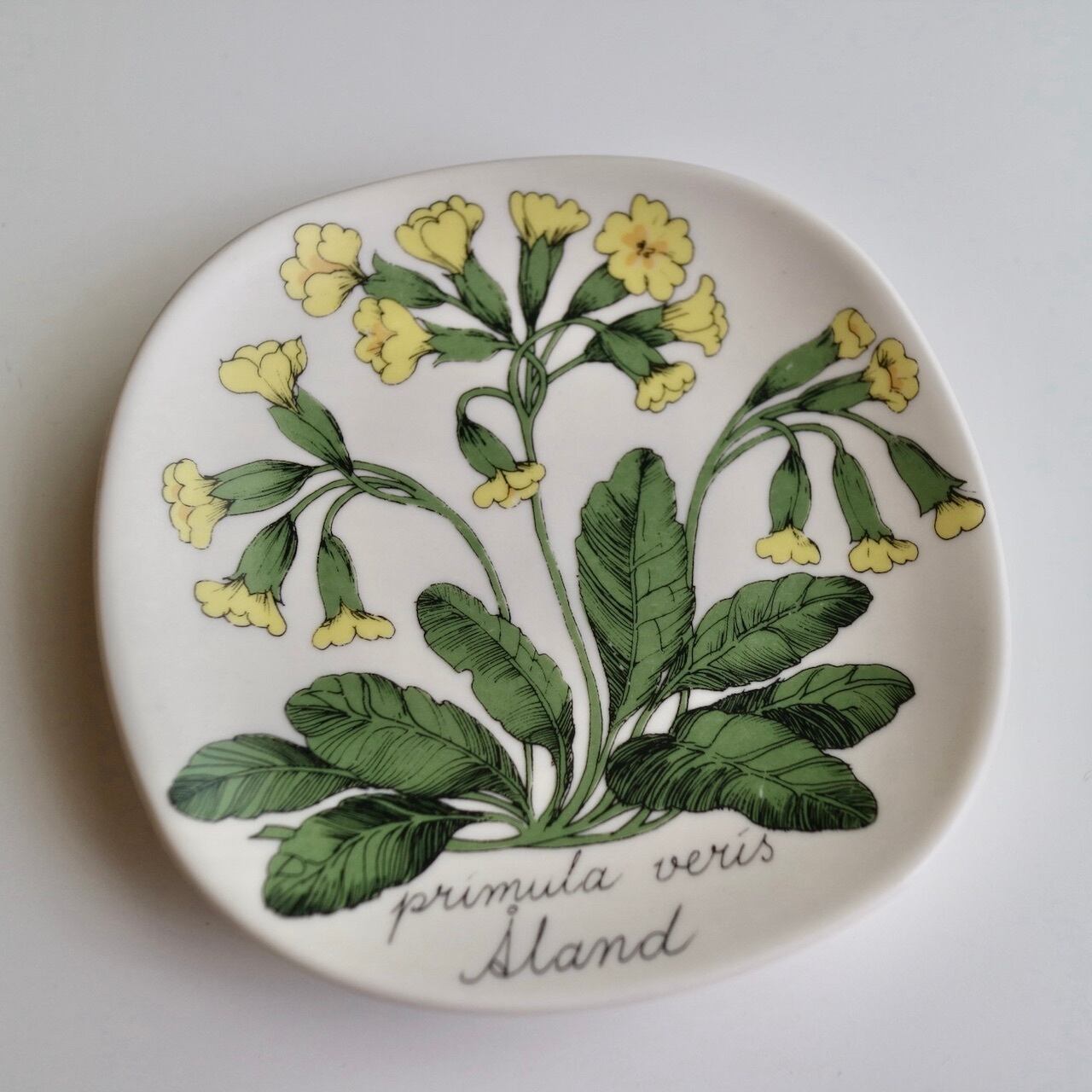フィンランドとスウェーデンの間に位置するフィンランドの自治領、オーランド諸島を象徴する花であるキバナノクリンザクラが描かれた限定版のプレートです。キバナノクリンザクラはサクラソウの仲間で、ラッパ状の黄色い花が特徴的。古くから薬用や食用ハーブとしても用いられているそうです。