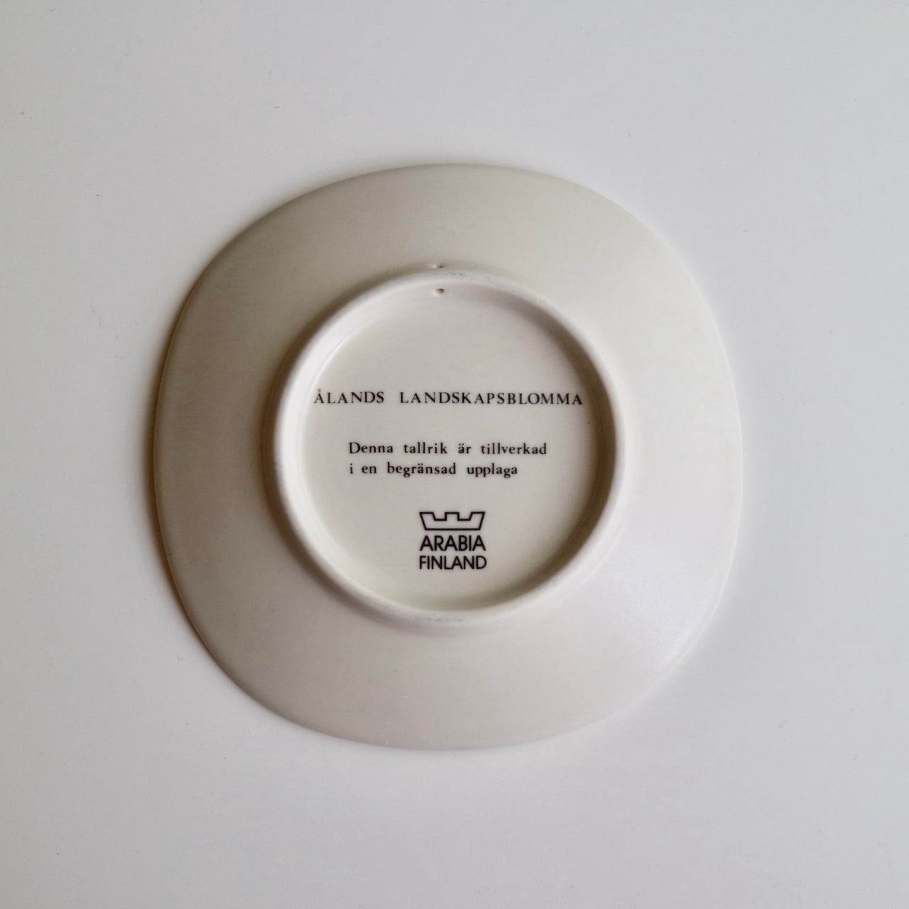 こちらはEsteri Tomula(エステリ・トムラ)によるデザインでBotanicaシリーズのウォールプレートと同じ形・雰囲気ですが、シリーズ終了後に限定で制作されたお品。(他にも丸プレートやヴェースなども存在)裏にはスウェーデン語で(オーランド諸島はスウェーデン語が公用語)「オーランドの風景花 / このプレートは限定生産です」と書かれています。かなり珍しいお品です。