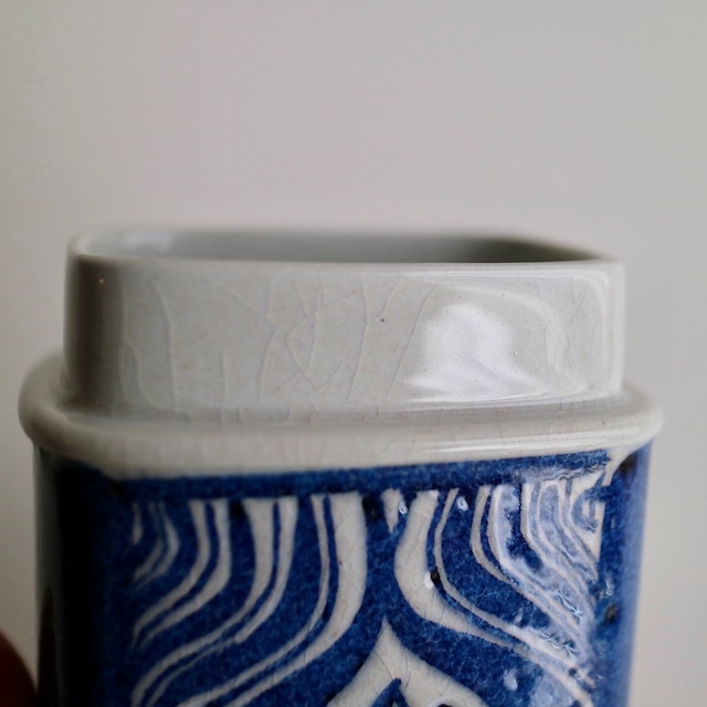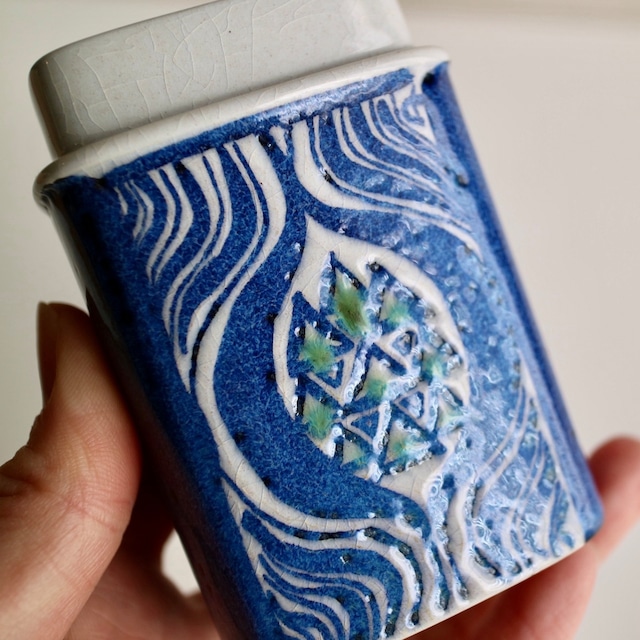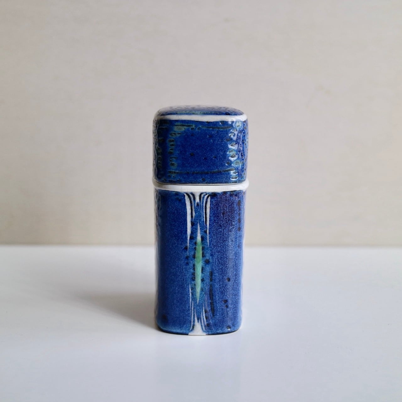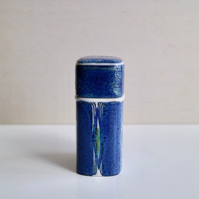 ブルーと少し入ったグリーンが印象的な蓋付きのシガレットケース。ちゃんとたばこが取り出しやすいよう、底の部分が斜めになっているのは秀逸です。蓋を外して一輪挿しのようお使いいただくのも良いかもしれません。