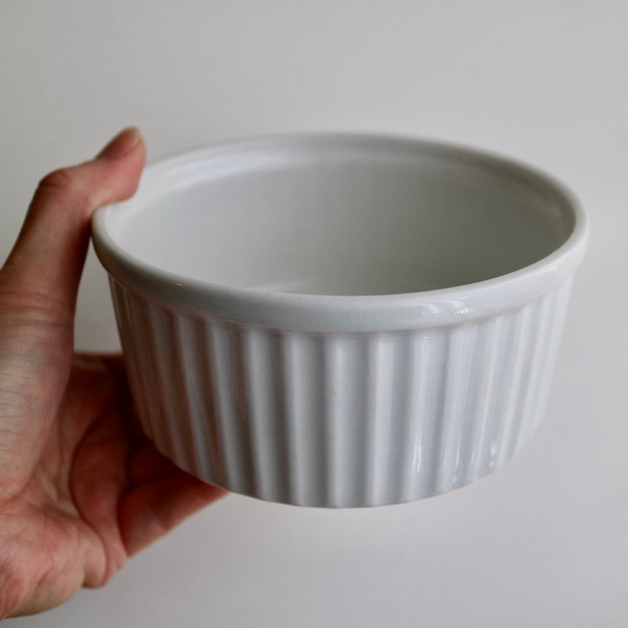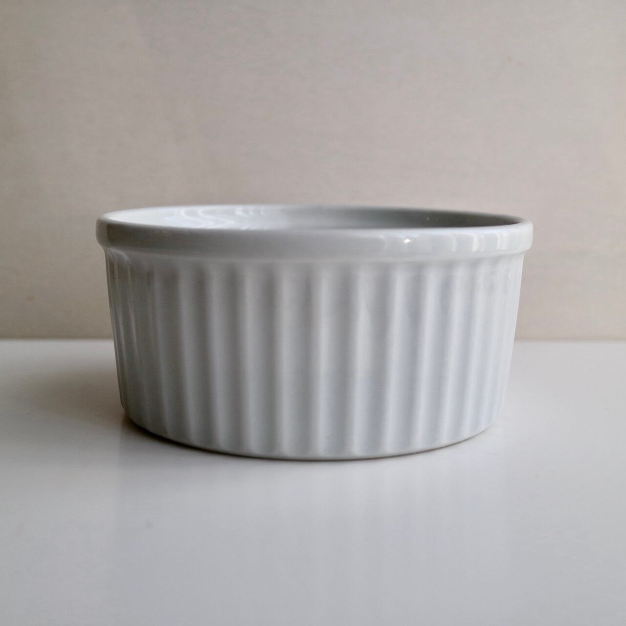 シンプルなホワイトのボウル(ディッシュ)で、オーブンで使用できるマークも裏に記されています。副菜を入れたりしてもいいですね。