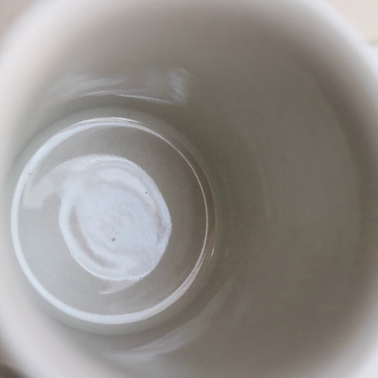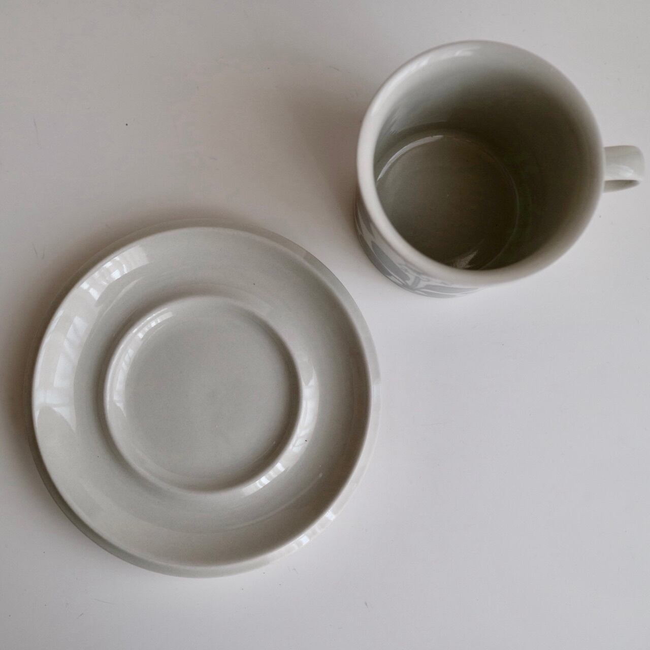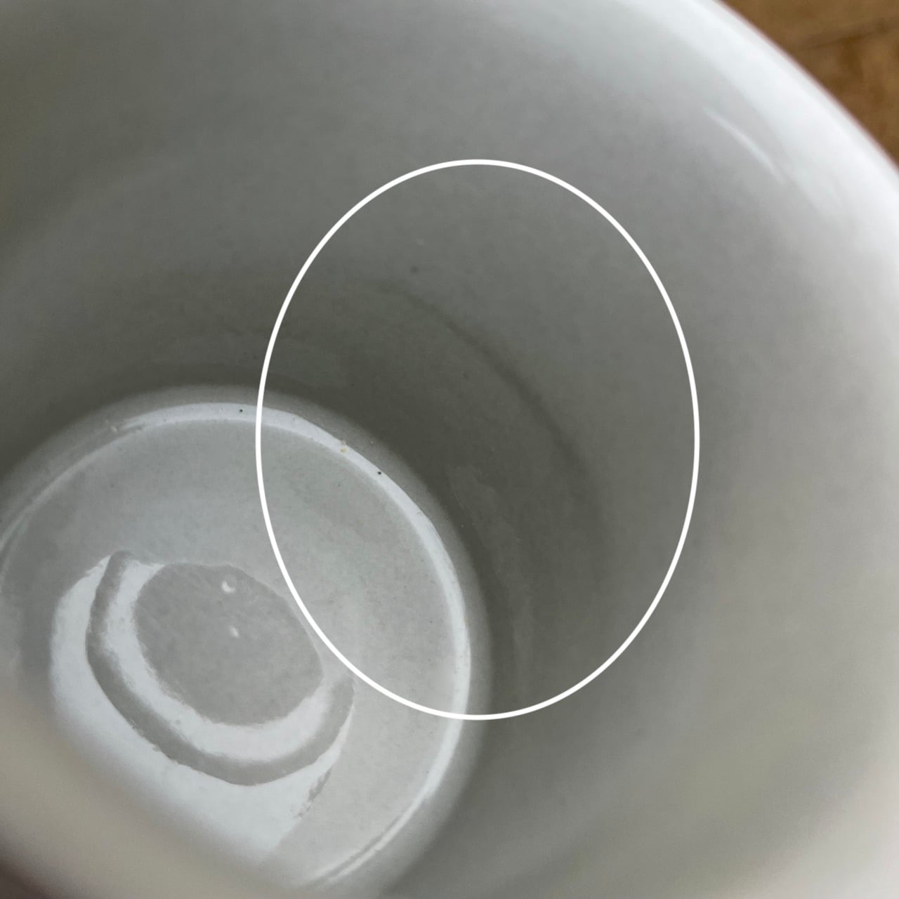 実際に使われていたお品ですので、多少キズやスレなどございますが、ヒビやチップなどは見られません。製造時からのものとして、ピンホールやカップの内側に釉薬ムラ、カップ縁に釉薬ムラによる多少のザラつきなどが見られます。全体的に綺麗な方かと思いますのでヴィンテージ品としては良好な状態です。在庫のコンディションは同程度です。