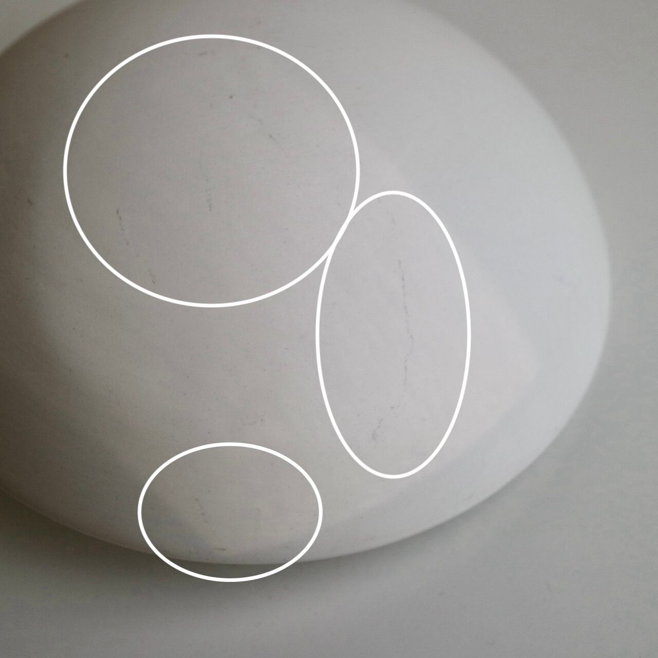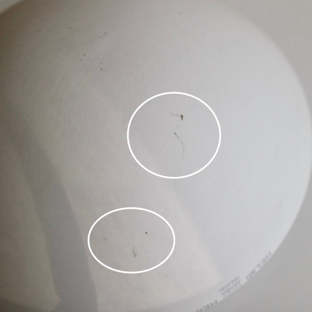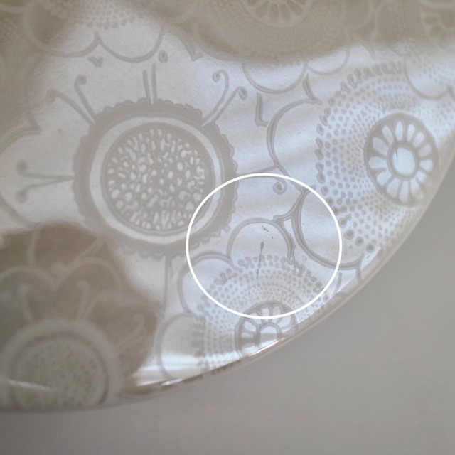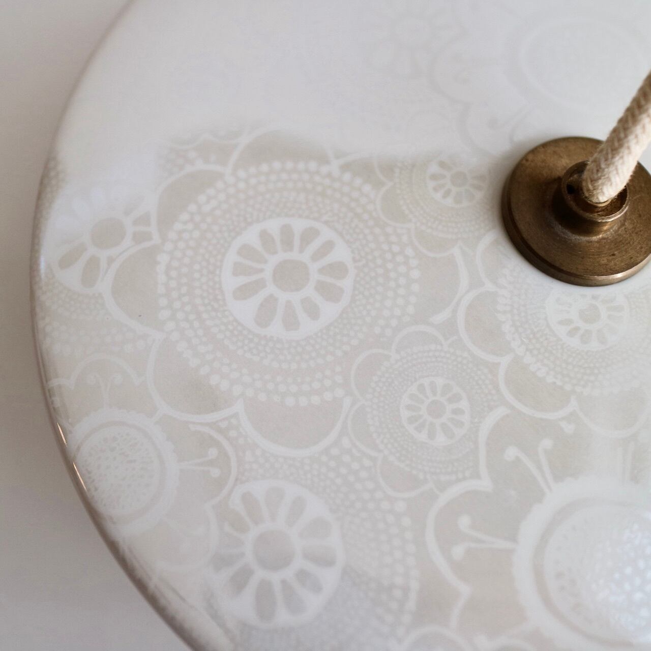フィンランド語で真珠を意味するHelmi。白く丸い半球のようなフォルムを持ち、上部には少しクリーム色に真珠の如く独特の輝きを放つ白い花柄模様が施されたオイルランプです。形としては不安定ではありますがひっくり返らないように作られています。このゆらゆら揺れる様が、よりHelmiの美しさを際立たせているような気がします。芯の部分は金具ごと引き抜いて取り外すことができます。