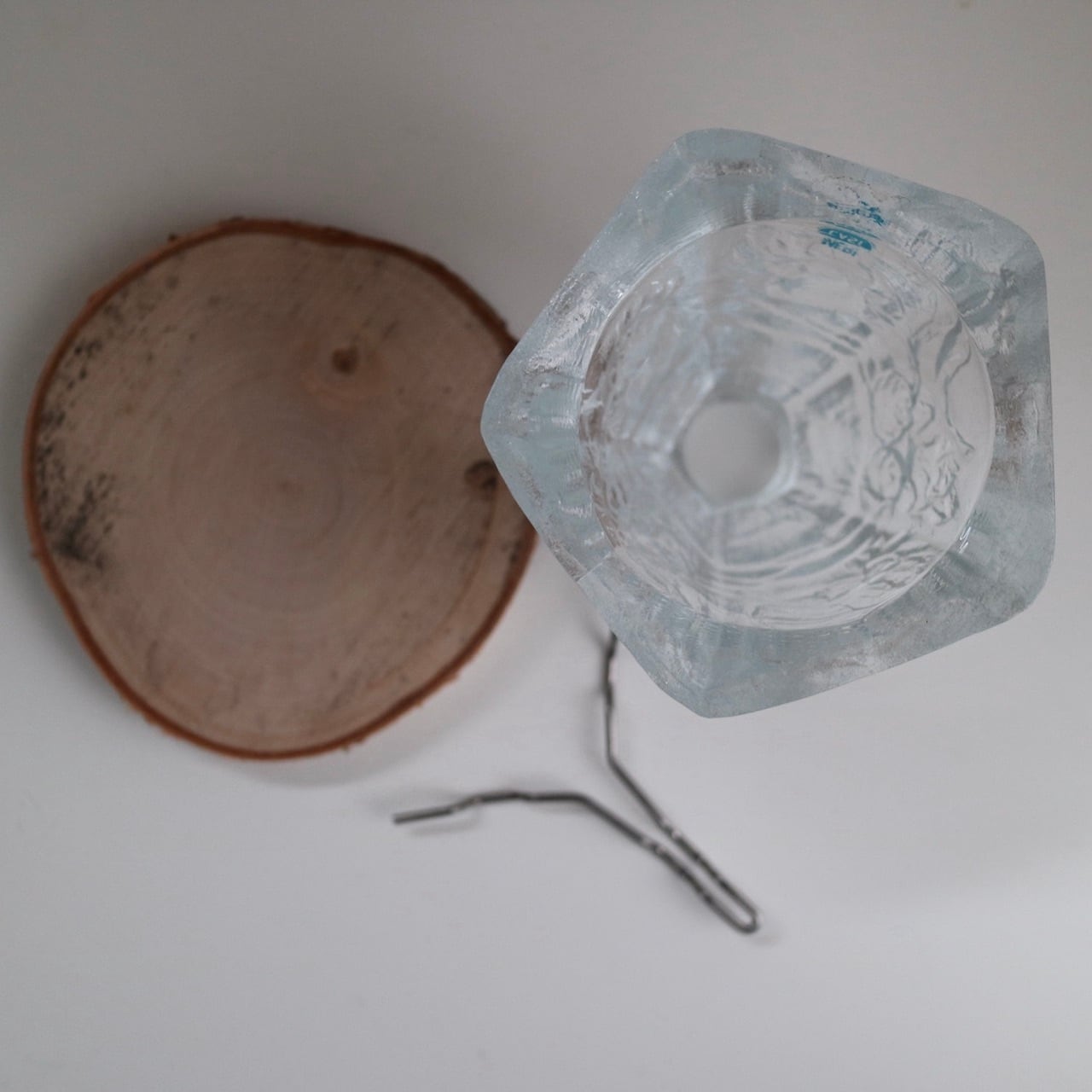 なお、金具は固定されていませんので、もし安定してキャンドルやガラス部分をお使いになりたい場合は、ホチキスや釘などで固定してしまっても良いかと思います。