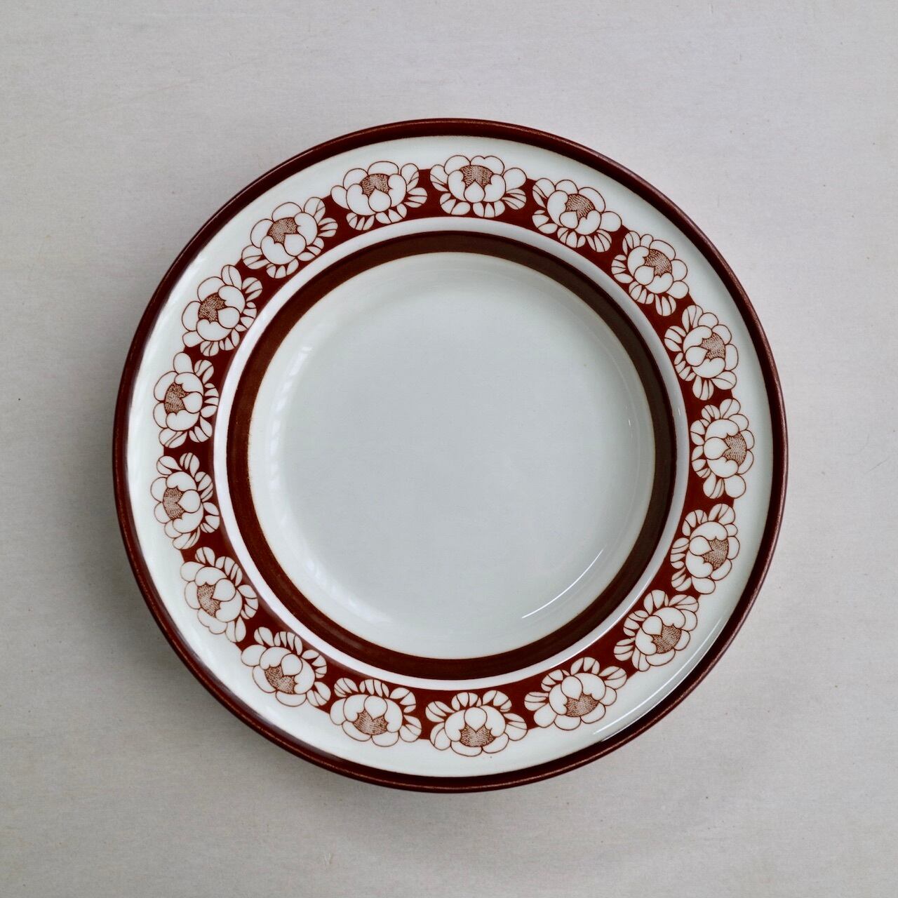フォルムはValencia(ヴァレンシア)と同じくUlla ProcopeデザインのNDモデル、そして印象的なデコレーションはEsteri Tomulaによるもので、蓮の花とブラウンのラインがリムにぐるっと描かれています。よく見ると花びらの形が違っていたりと、花は一つひとつ異なります。優しいながらも上品な雰囲気を持つ素敵なシリーズです。