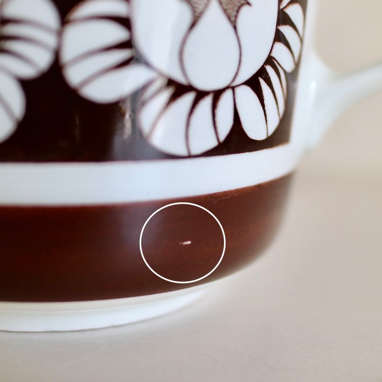 実際に使われていたお品ですので、多少キズや裏底面にシミなど見られますが、ヒビやチップはありません。全体的に艶もあり綺麗な方かと思いますので、ヴィンテージ品としては良好な状態です。